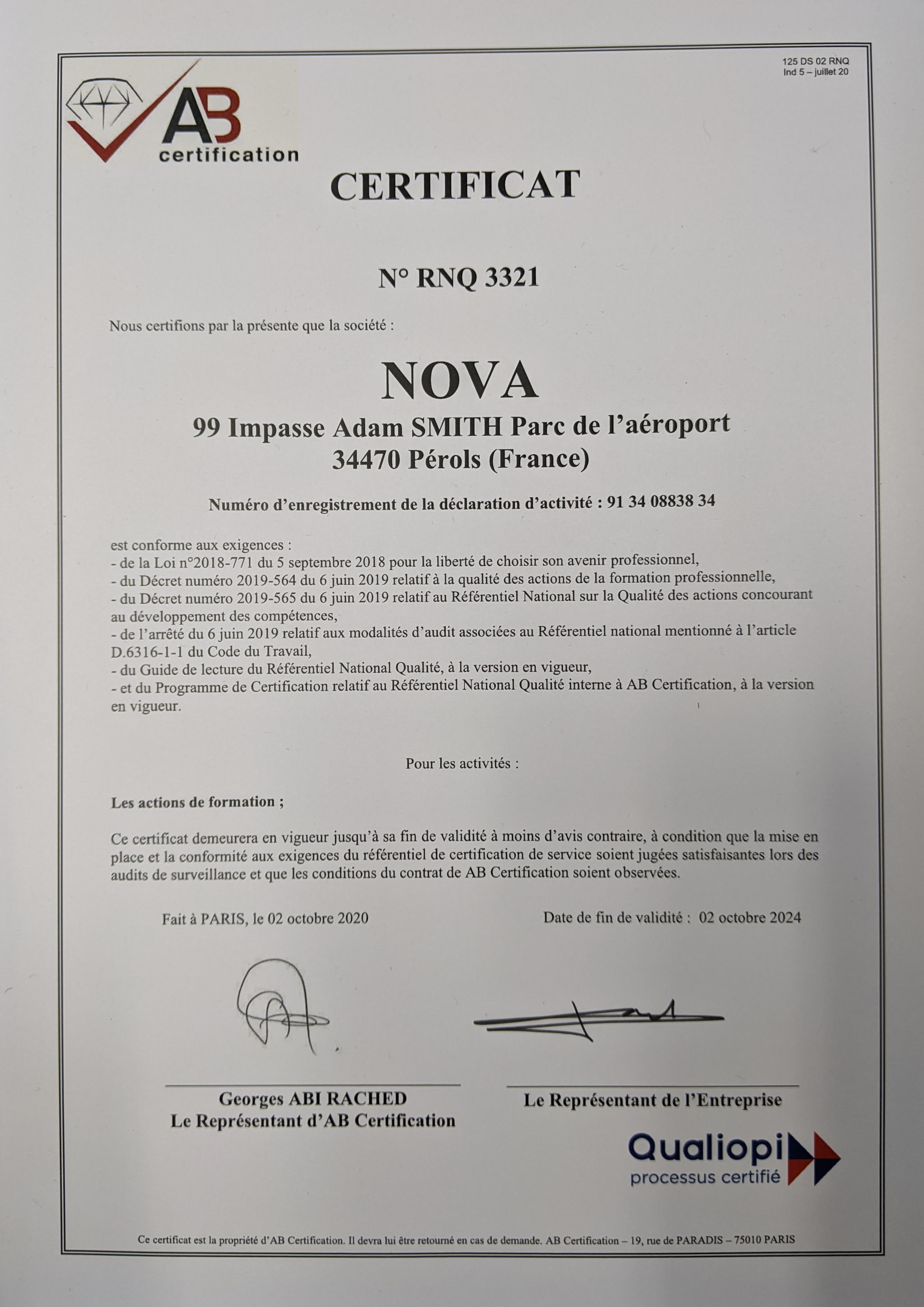 - Certifie de la qualité de la formation dispensée par l’organisme de formation